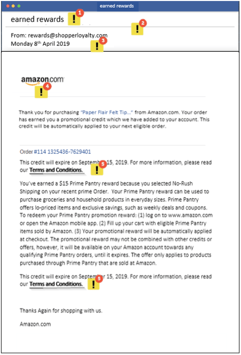 - Be aware of ‘receipt’ emails that show the amount paid without a relevant currency symbol. This is a phishing email that is targeting more than one country or region.