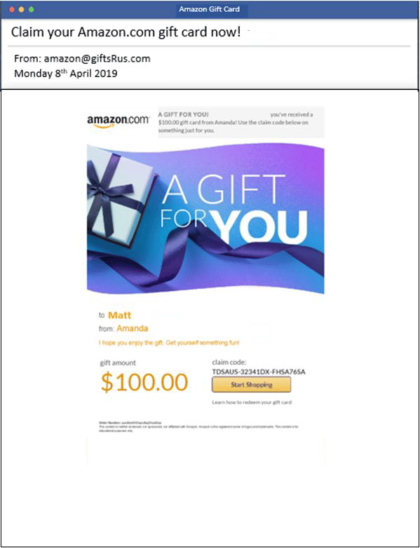 - If this is an email that you were not expecting, make sure that you recognize the person the gift is from.