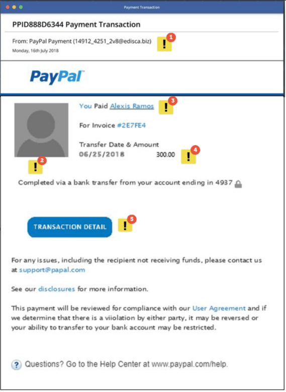 - When receiving an email in relation to making a payment, make sure you recognize the person/company name, and that it is the amount you are expecting to pay.